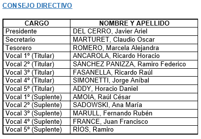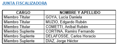 El día 27 de Abril de 2018, asumieron sus cargos las Nuevas Autoridades del Consejo Directivo y Junta Fiscalizadora, por vencimiento del mandato de las autoridades anteriores, efectuada por la Asamblea General Ordinaria realizada el 26/04/2018.